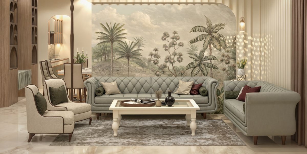 Beige-on-beige palettes were a 90s go-to, often creating a flat, lifeless atmosphere. While neutrals are still popular, today’s tones are warmer and more dynamic. Think taupe with pink undertones, greige, or even sandy earth tones that bring a sense of warmth without dullness. These updated shades work well with natural wood finishes, ambient lighting, and eco-friendly paint for a more inviting and updated interior.